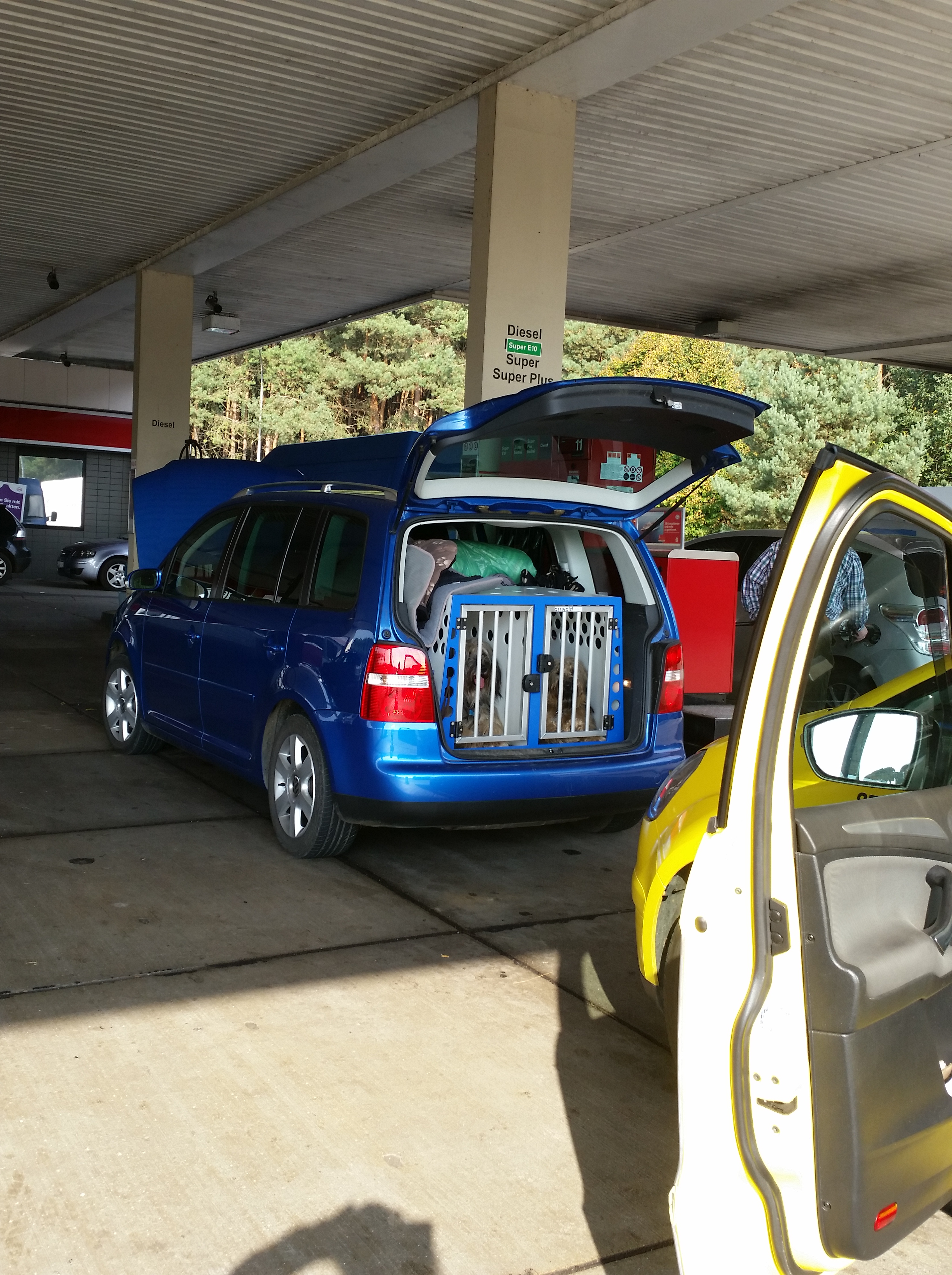 Angefangen beim unserem höchst erfreulichen Pannen-Stopp an der Tankstelle in Höhe Berlin. Prima, eben noch getankt und jetzt springt das Auto nicht mehr an. 1,5 Stunden Wartezeit auf den netten Mann vom Pannendienst folgten, der uns dann freundlicherweise eine neue Batterie einbaute – also eigentlich baute er sie unserem Touran ein, nur damit da keine Missvertsändnisse aufkommen – und dann konnte es auch schon weitergehen. Entgegen unserer Erwartungen kostete uns das Ganze nur kanpp zwei Stunden Zeit und rund 130 Euro. Wie wir finden, ist der Preis o.k. Was ich viel weniger o.k. fand, war die Gleichgültigkeit all der Menschen um uns herum. Die interessierte es einen Scheiß, warum wir dort mit offener Motorhaube standen. Kein einziges Mal wurde gefragt „Können wir Ihnen helfen?“, stattdessen wurden wir mehrfach angepöpelt, weil unser Auto nun blöderweise direkt an der Zapfsäule stand und diese damit auch blockierte. Frechheit!