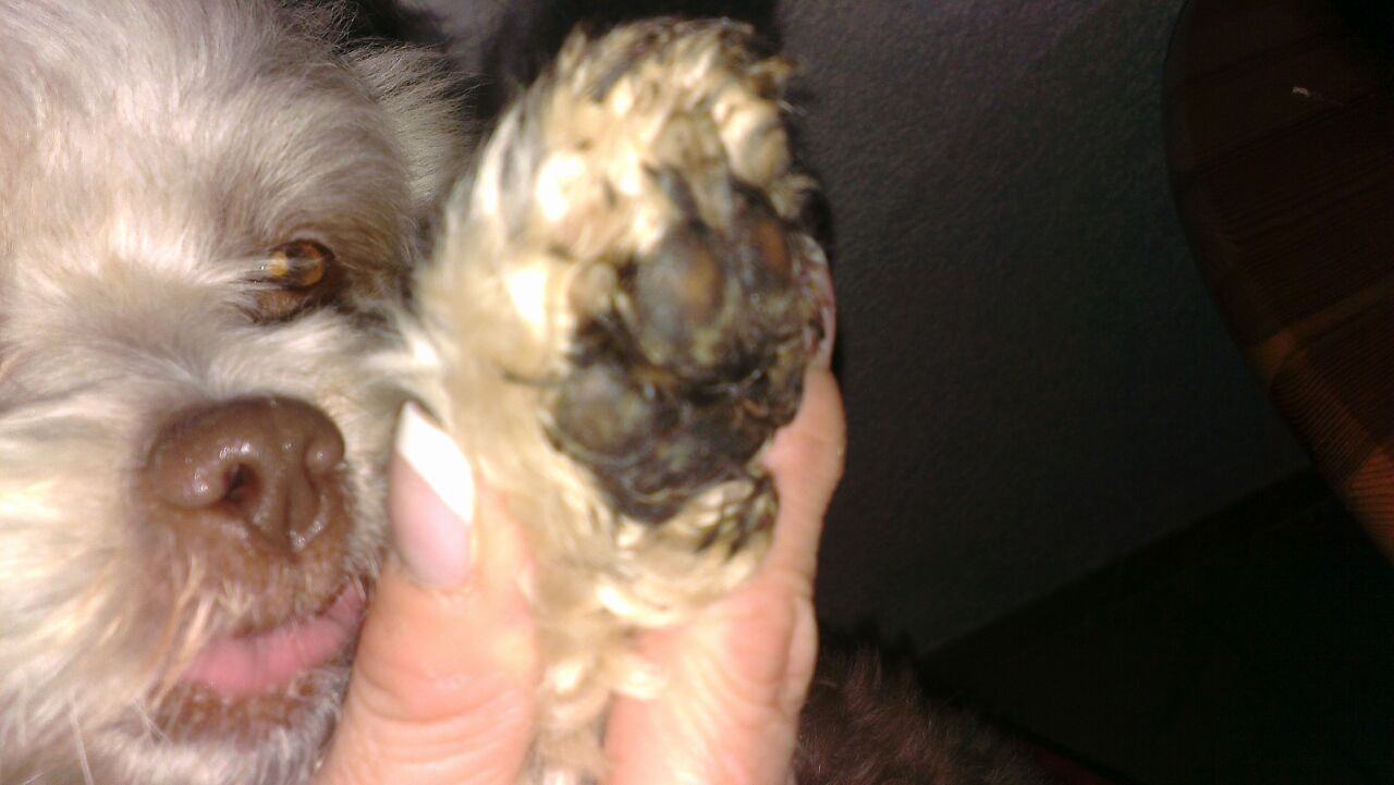 So ein Mist. Wieder zuhause angekommen musste Tani uns viel Fell an den Pfoten und zwischen den Zehen wegschneiden, denn alles war über und über schwarz verklebt. „Das geht nie wieder raus“; sagte Tani, „da müssen wir schneiden.“ Ich bin zum Glück noch glimpflich davon gekommen, bei mir sieht man die weggeschnippselten Stellen kaum. Aber der arme Pauli, der hat jetzt einen Pfoten-Kurzhaar-Schnitt … *lach*