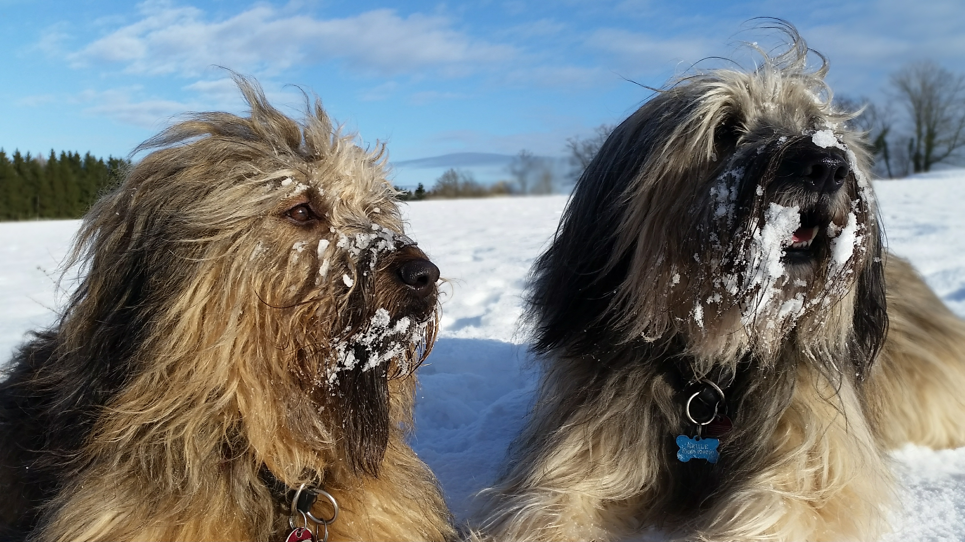 Mir macht es dann immer riesigen Spaß, die beiden Fellnasen im Schnee zu fotografieren. Natürlich schlepp ich beim Spaziergang nicht meine große Kamera mit mir herum. Das Smartphone muss reichen. Dabei bin ich immer wieder erstaunt, was für tolle Motive man mit diesen Handy-Kameras mittlerweile schießen kann. Die Farben sind klar, die Motive scharf – und was nicht ganz passt, wird später zuhause mit dem Bildbearbeitungsprogramm am Laptop passend gemacht. Doch das ist ehrlich gesagt, selten nötig. Meist freu ich mich so über die schönen Motive, dass sie postwendend noch von unterwegs direkt vom Handy auf Facebook, Instagram und Google+ übertragen werden.