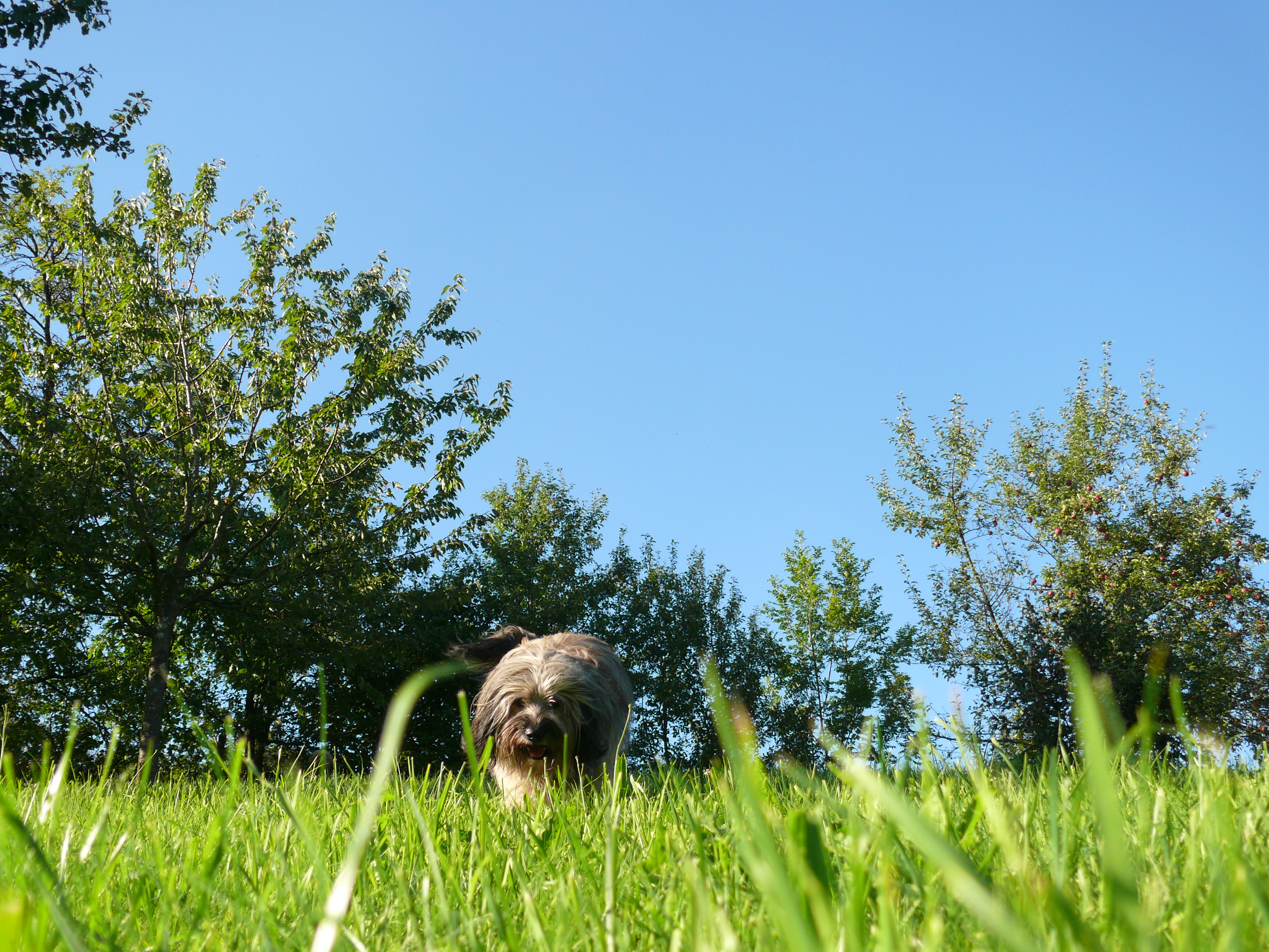 Das alles fand ich sehr interessant und hab es deshalb bei meinen beiden Wuschels ausprobiert. Herta bekommt sechs bis acht Tropfen Öl ins Futter (Herta wiegt 18 Kilo), Paule bekommt acht bis zehn Tropfen davon ins Essen (Paule wiegt 25 Kilo). Ich hab mich aber nicht aus Jux und Tollerei dafür entschieden, sondern schlichtweg deshalb, weil Paule massiv Probleme hat, wenn ich ihm ein Anti-Zecken-Spoton auf die Haut träufle. Entweder gehen ihm büschelweise die Haare aus oder zittert seine Haut bei jeder Berührung – irgendwie müssen die Nerven in seiner Haut auf die Inhaltsstoffe reagieren, daher das Zittern. Dabei ist der Paule eigentlich ein robuster Kerl. Also dachte ich, probieren wir es mal auf dem natürlichen Weg.