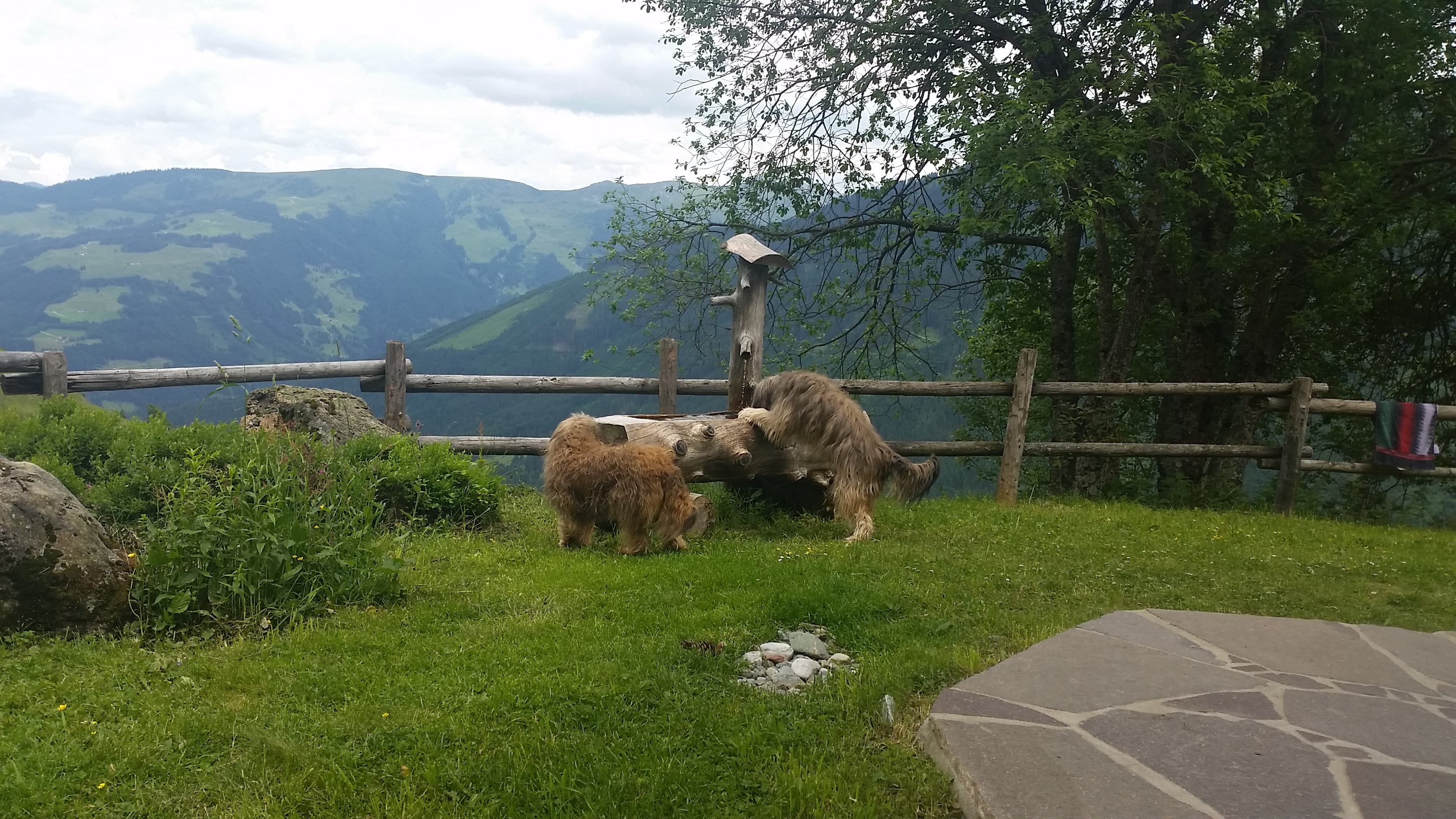 Apropos Hunde – für Herta und Paule war die Hütte ein echtes Paradies. Futter gab‘s im Garten, trinken konnten die beiden direkt aus dem Brunnen – auch im Garten – ums Haus rennen und spielen und toben oder einfach mal ne Runde im Gras und im Sonnenschein pofen – alles möglich. Hinterm Haus ein paar Kühe, die Hund bei Bedarf auch mal ankläffen kann und einfach nur ganz viel weites Land und Bergluft und Natur und ganz viel Freude am Leben – was brauchen Mensch und Hund mehr. NIX.