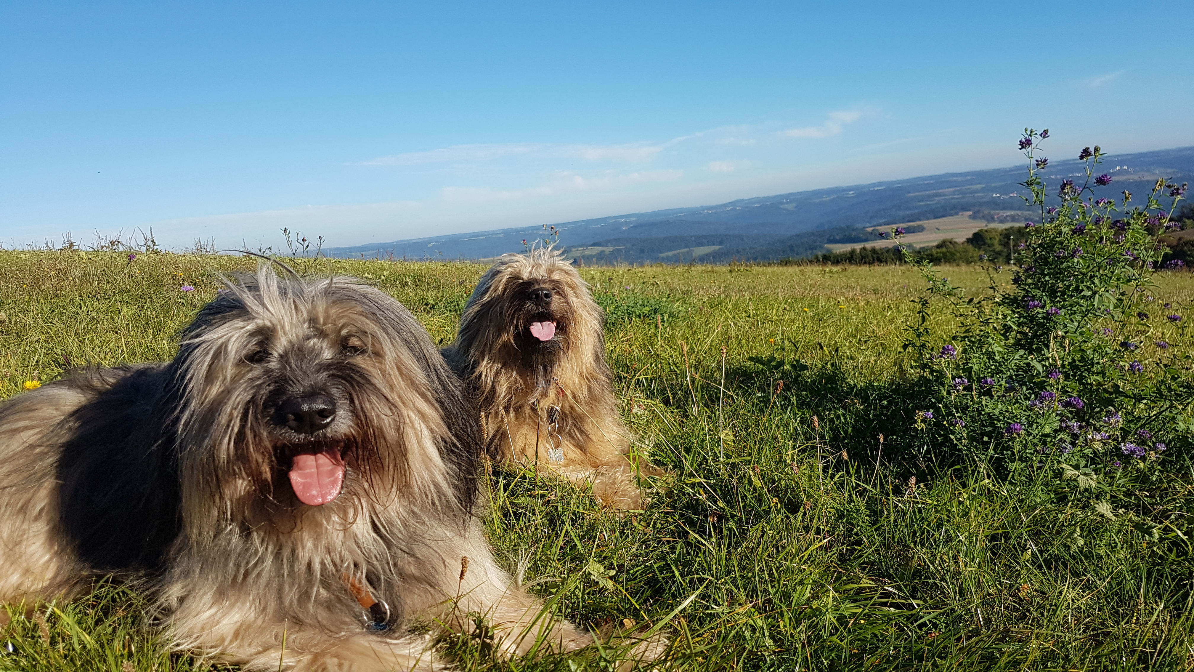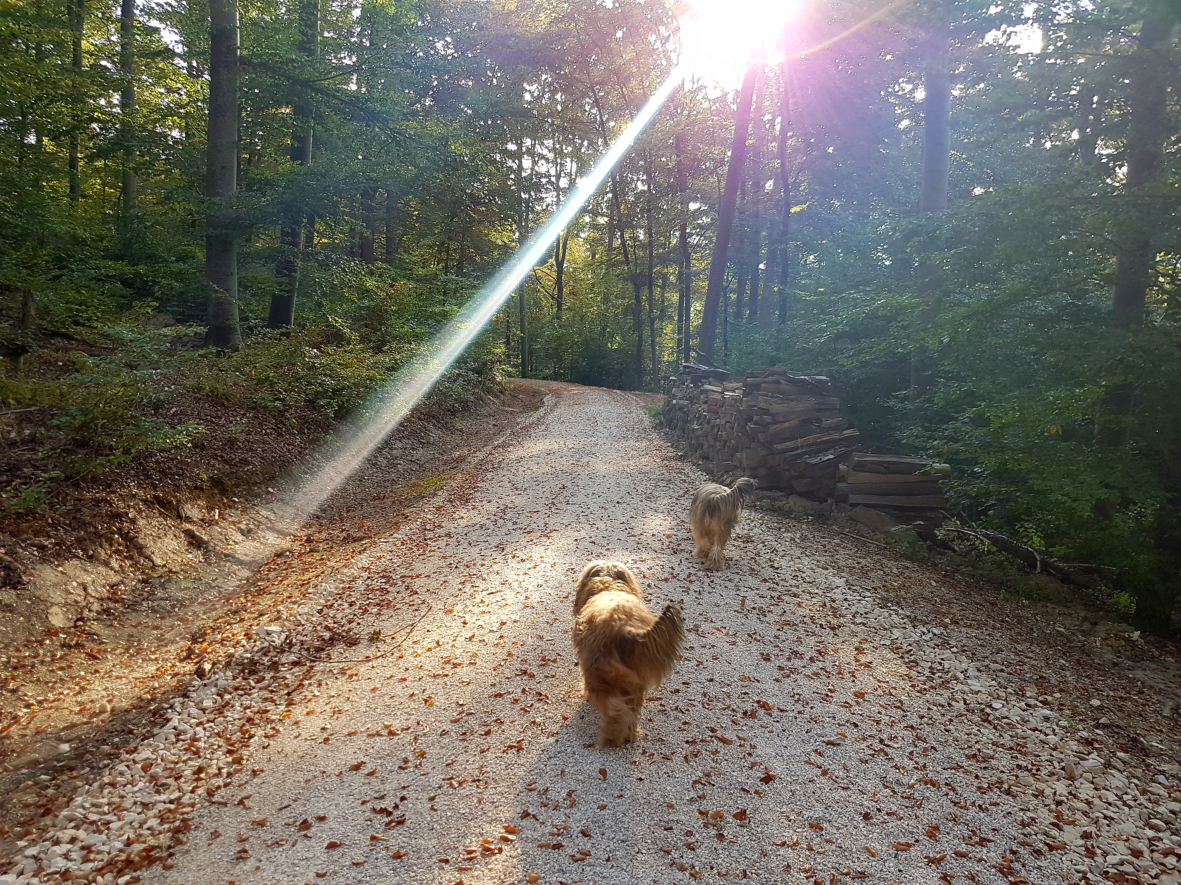 Zeit habe ich allerdings nach wie vor keine. Zumindest hab ich das Gefühl, dass wir, dass ich meiner Zeit andauernd hinterherrenne. Nur einmal am Tag ist das nicht so. Einmal am Tag, wenn wir drei, Herta, Paule und ich, draußen unterwegs sind, dann vergesse ich die Zeit, dann brauche ich sie nicht, dann brauch sie mich nicht, dann hab ich sie einfach. Und dafür bin ich meinen beiden Wuschels unglaublich dankbar. Sie schenken mir diese Zeit. Ja, so sehe ich das. Herta und Paule schenken mir diese Zeit. Ohne die Zwei würde ich viel weniger Zeit draußen genießen. Ohne die Zwei würde ich Gefahr laufen, immer mehr zu arbeiten und immer weniger zu leben. Dabei ist leben, das Leben genießen doch so schön. Und Ruhepausen, nicht nur körperliche, sondern vor allem auch geistige Pausen, sind darüber hinaus so wichtig.