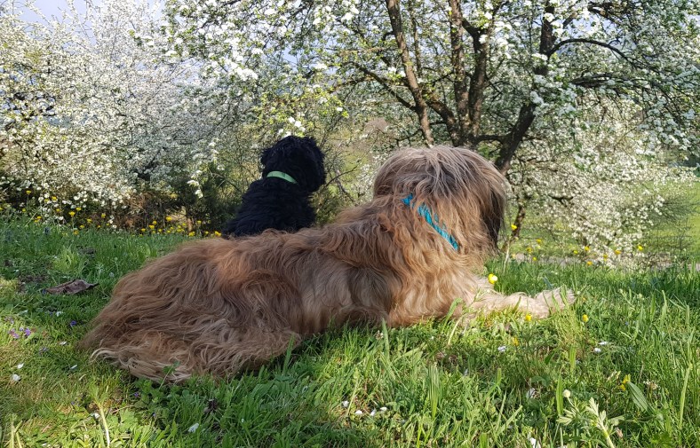 Herta hat sich mittlerweile auch mit Fritzle arrangiert. Das ging recht schnell. Obwohl er echt rotzfrech zu ihr ist und ihre Maßregelung einfach nicht akzeptieren möchte. Sie kümmert sich um ihn mit einer Engelsgeduld. Nur mit der letzten Konsequenz hapert es bei ihr noch. Da muss ich zwischendurch nachhelfen. Zwischenzeitlich hat er damit begonnen seinen Frust an mir abzulassen. Ich bin sauer, also beiß ich einfach mal mit meinen spitzen Welpenzähnchen in den Unterarm meines Frauchens. Quietsch meinerseits. Scheißergal. Nochmal. Hejoh – geht’s noch? Einmal Schnauzengriff. Fertig. Denkste. Weiter geht die Attacke. Da hilft nur noch eins. Festhalten das Kerlchen, bis es ausgetobt hat. Bockig bis hysterisch windet er sich in meinen Armen und ist wirklich schwer festzuhalten, das flutschige Scheißerchen. Doch dann – aaahhhh – es entspannt sich. Jetzt kann ich loslassen. Die erste Lektion ist durch. Das Fritzle schüttelt sich und marschiert entspannt von dannen. Puh. Was für ein Racker.