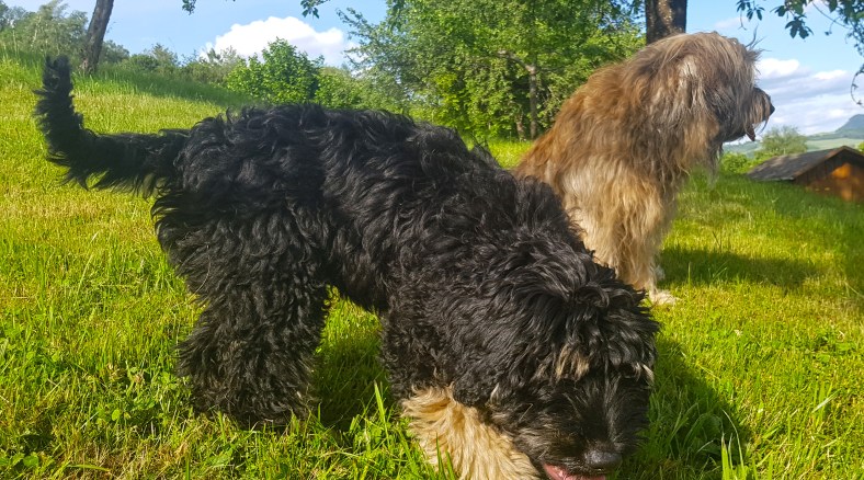 Fazit: Fritzle ist ein hyperaktive Pissnelke mit starker Tendenz zur Verbesserung. Halleluja 😉. Fraule, Herta und Herrle müssen wohl einfach noch ein bisschen Geduld aufbringen und mit ihm trainieren, trainieren, trainieren. Wobei ich tatsächlich manchmal nur eines möchte: schlafen, schlafen, schlafen. Dass es einfach wird, hat niemand gesagt. Doch wenn mich der kleine schwarze Fratz dann mit seinen kugelrunden Kulleraugen anschaut, sich auf den Rücken wirft und sich das Bäuchlein kraulen lässt, oder wenn er sich an die Herta kuschelt und sie das sichtlich genießt… dann ist alles gut 💗.