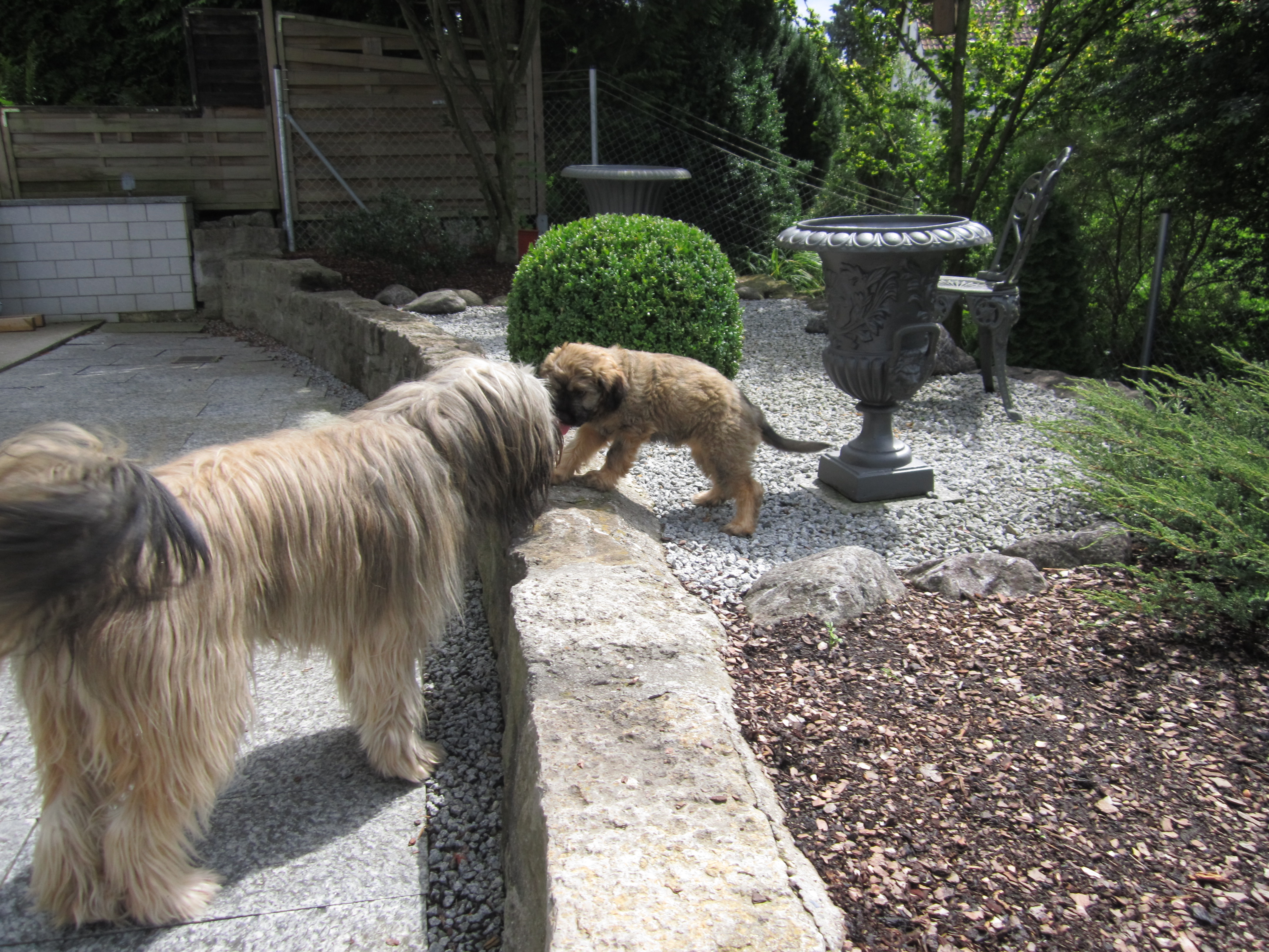 Nach den ersten anstrengenden, spannenden und doch so wunderbaren Jahren mit Pauliii, polterte die Herta von der frechen wilden Hummel in unser Leben. Geplant war eigentlich ein zweiter Rüde, doch wie das Leben so spielt: Es wurde eine Hündin. Noch heute bin ich dankbar, dass es so kam, denn ich glaube, mit einem zweiten Rüden im Haushalt, wär unser Paule nicht klargekommen. Also danke liebe Hummel (Mama von Herta) dafür, dass du im Mai 2012 nur einen Rüden zur Welt gebracht hast, der nicht unserer sein sollte. Und danke liebe Annette (Züchterin von Herta), für deine überzeugenden Argumente, doch ein süßes Mädel zu nehmen. Und danke lieber Ehemann für deine pragmatische Entscheidungshilfe mit den Worten: „Ich wollte doch schon immer ein Mädel!“ Ha, kluge Worte, dabei hätte er bei der Ehefrau eigentlich um die Macht der weiblichen Hormone wissen müssen.