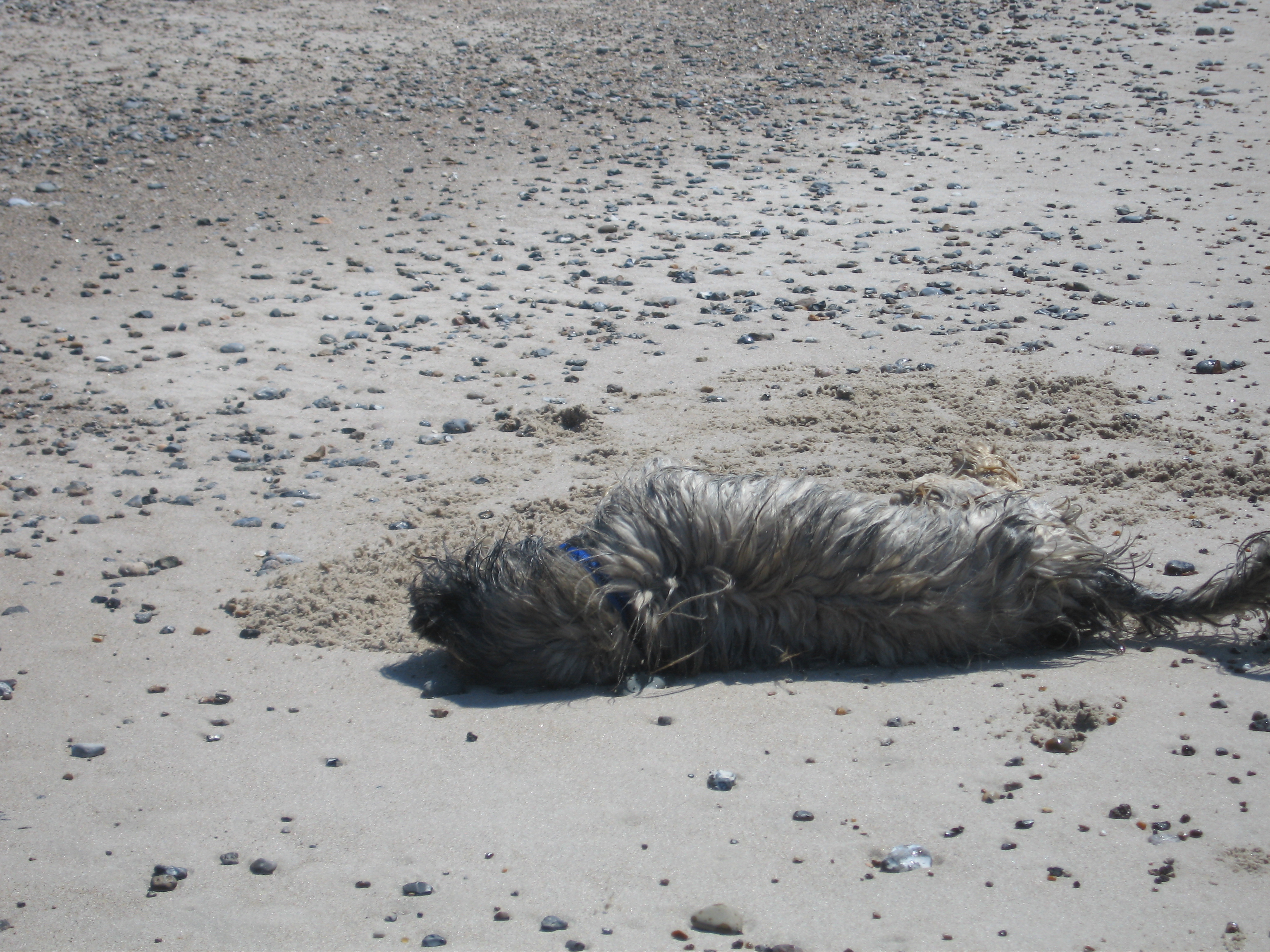 So denn, kam es, wie es kommen musste. Das Hertalein wurde läufig. Auf einmal zeigte das sonst so unkomplizierte Mädel, was sie drauf hat. Fortan waren und sind die Wochen (Monate) um Hertas Läufigkeit, ja sagen wir mal, spannend. Guuuut ein bisschen zur Hysterie neigt sie ja immer, aber einmal, circa alle acht bis neuen Monate gibt sie ein paar Wochen lang alles. Da sehen Paule und ich dann bei Hundebegegnungen plötzlich alt aus. Wie eine wildgewordene Springmaus hüpft sie an mir hoch, an sich selbst hoch, knabbelt Pauli ins Ohr, bis es auch dem stinkt, und ich häng am anderen Ende der Leine wie ein Vollprofi. Herrlich! Passiert aber nicht bei jeder Hundebegenung, sondern nur bei jedem dritten, vierten oder auch mal fünften Mensch-Hunde-Team das an uns vorbeischlendert – unvermittelt und spontan. Kopfschüttelnd laufen dann die fremden Hundebesitzer an uns vorbei. Mein hilfloser Hinweis: „Mein anderer Hund ist ein ausgebildeter Rettungshund“, hilft dann auch nicht mehr. Spar ich mir mittlerweile auch – alles nur vergeudete Energie – hihi…