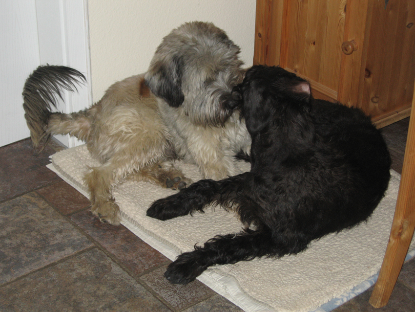 Pauli im Oktober 2008 im Alter von 15 Monaten, ca. 4 Wochen nach seiner Schur. Hier beim Kuschel-Spiel mit seiner damals besten Freundin Martha, die leider bereits über die Regenbogenbrücke ging…